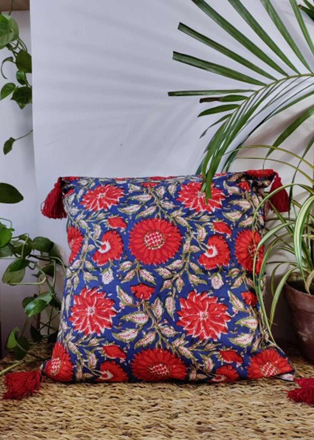 Spruce up your space with Our 'Block Print Love'! This Red-Blue floral cushion cover is all you need for a relaxed hygge kinda day. Made of cotton, it is sure to give you a breezy feel and brighten your space.