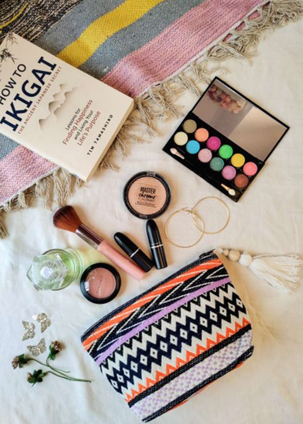 Its pop of orange and purple weaves ooze out quirkiness punched with sophistication. It’s made of jacquard weaved fabric to give you a chic look and measures 9inches in width and 6 inches in height. This lifestyle product is a must-have to carry all your teeny meeny but very important things.