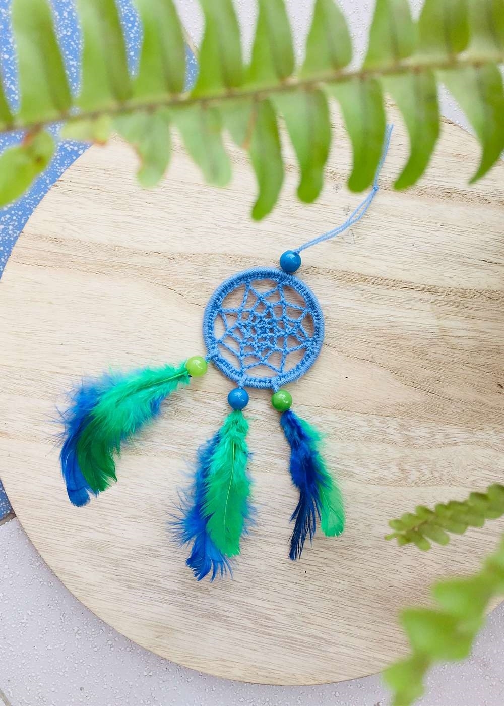 Hand weaved with love, this intricately crocheted mini dreamcatcher is everything you need to make your day colourful and bright.