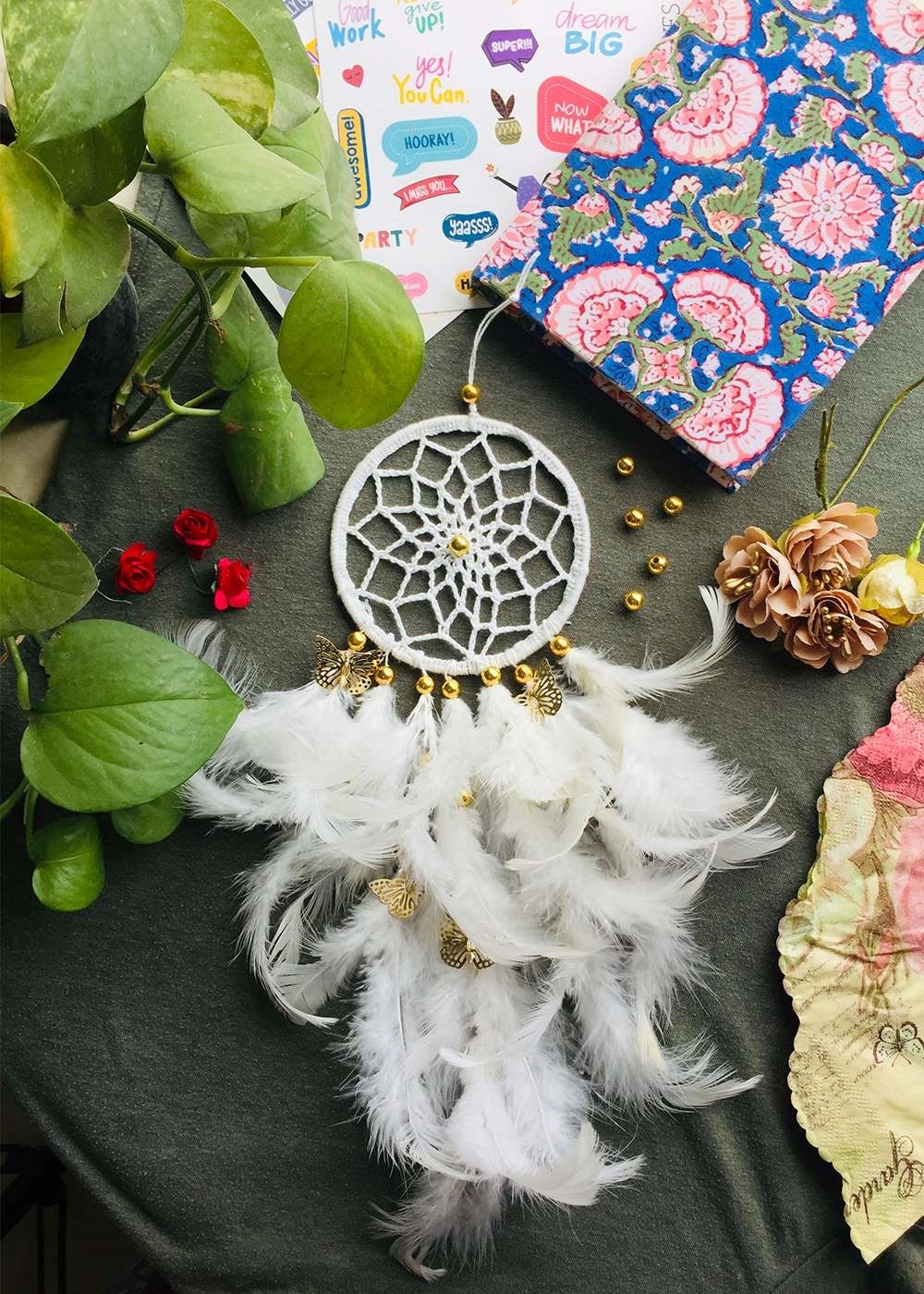 Hand made with love, this intricately crocheted mini dreamcatcher is everything you need to make your day colourful and bright.